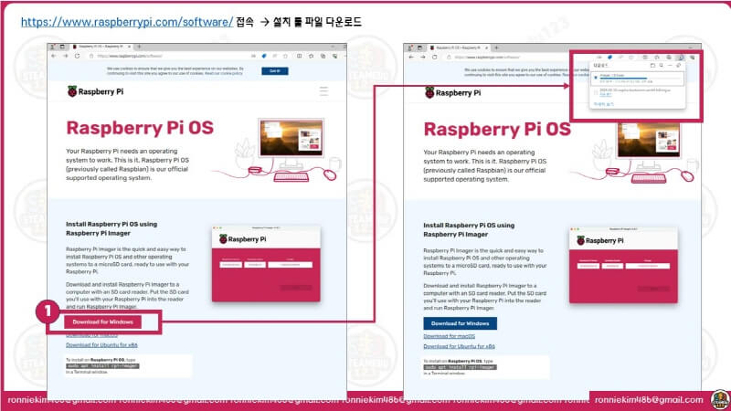 라즈베리파이 재단에서 제공하는 공식 이미징 소프트웨어인 Raspberry Pi Imager를 사용하여 라즈베리파이4 운영체제를 SD 카드에 설치할 수 있습니다. 우선, 라즈베리파이 재단의 공식 웹사이트(raspberrypi.org)에서 Raspberry Pi Imager를 다운로드합니다. 여기서는 Windows, macOS, Ubuntu를 위한 버전을 찾을 수 있습니다. 또한, 사용하고자 하는 라즈베리파이4 운영체제의 이미지 파일도 다운로드해야 합니다. 이 글에서는 라즈베리파이 OS(Raspbian)를 예로 들겠습니다.