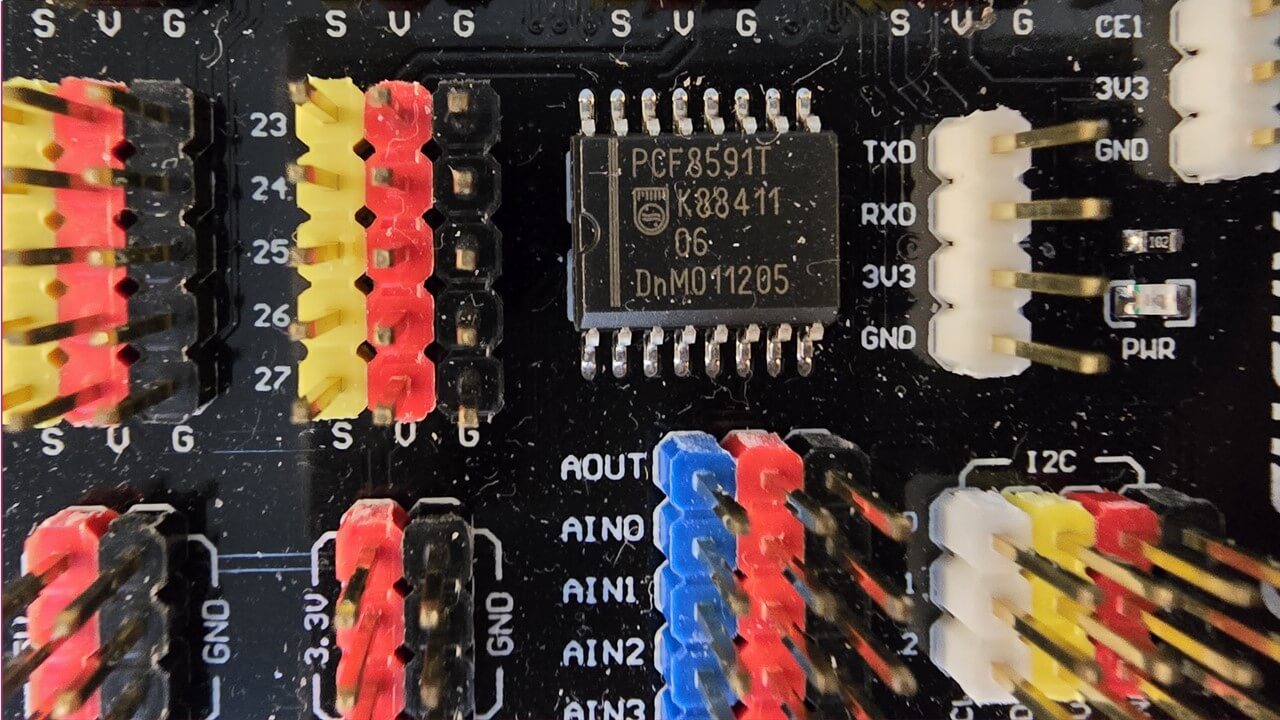 PCF8591T 칩은 NXP Semiconductors에서 제작한 8-비트 아날로그-디지털 변환기(ADC) 및 디지털-아날로그 변환기(DAC)입니다. 이 칩은 주로 센서 신호 및 아날로그 출력을 다루는 다양한 전자 회로에서 사용됩니다. PCF8591T의 주요 특징을 아래와 같이 요약할 수 있습니다:
