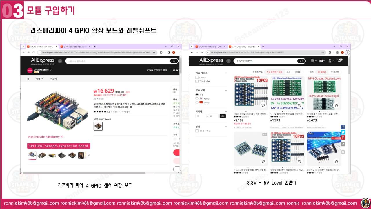 - 3.3볼트에서 5볼트로의 레벨 컨버터는 라즈베리파이와 5볼트를 사용하는 장치 간의 전압 차이를 조절해줍니다. 라즈베리파이의 GP IO핀은 3.3볼트로 작동하지만 많은 전자 부품과 센서는 5볼트에서 동작하기 때문에, 이러한 컨버터없이는 라즈베리파이를 손상시킬 위험이 있습니다. 레벨 컨버터는 양방향으로 데이터 신호를 변환할 수 있어, 양쪽 장치 간의 안전하고 원활한 통신을 보장합니다. 예를 들어, 높은 전압을 요구하는 모터나 조명 시스템을 제어할 때 필수적입니다. 이 두 확장 도구를 사용하기 위해서는 몇 가지 주의해야 할 점이 있습니다. 먼저, 확장보드와 레벨 컨버터를 라즈베리파이에 연결할 때는 핀 배열을 정확하게 확인하고 연결해야 합니다. 잘못된 연결은 부품 손상을 초래할 수 있습니다. 또한, 전력 관리에 주의를 기울여야 하며, 모든 전자 부품을 다룰 때는 정전기로부터 보호하기 위한 조치를 취하는 것이 좋습니다.