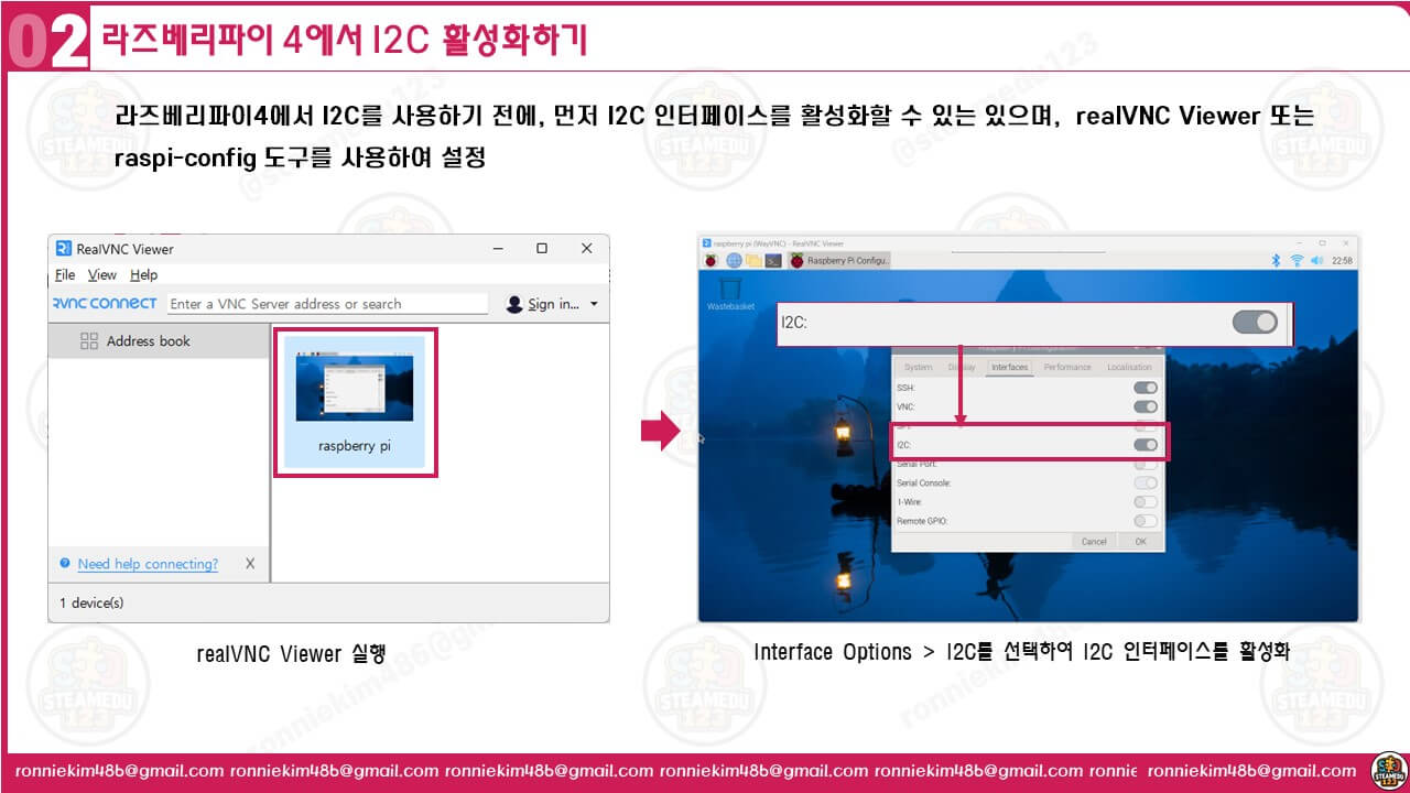라즈베리파이 4에서 I2C를 사용하기 전에, 먼저 I2C 인터페이스를 활성화할 수 있는 있으며, raspi-config 도구를 사용하여 쉽게 설정할 수 있습니다.