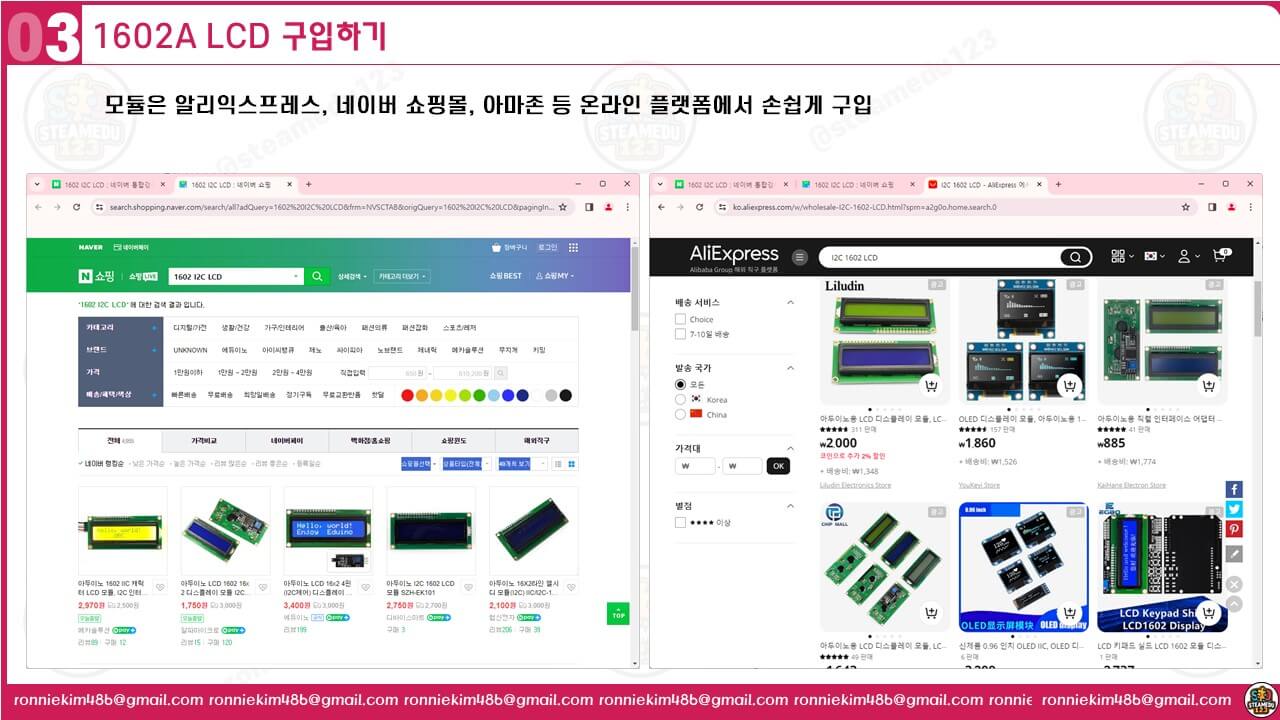 1602A I2C LCD 모듈은 알리익스프레스, 네이버 쇼핑몰, 아마존 등 온라인 플랫폼에서 손쉽게 구입할 수 있습니다. 구입 시, 제품의 호환성, 품질, 그리고 배송 옵션을 꼼꼼히 확인하는 것이 중요합니다. 구입 후에는 제품에 포함된 문서를 참조하여 기본적인 사양과 기능을 확인하세요.