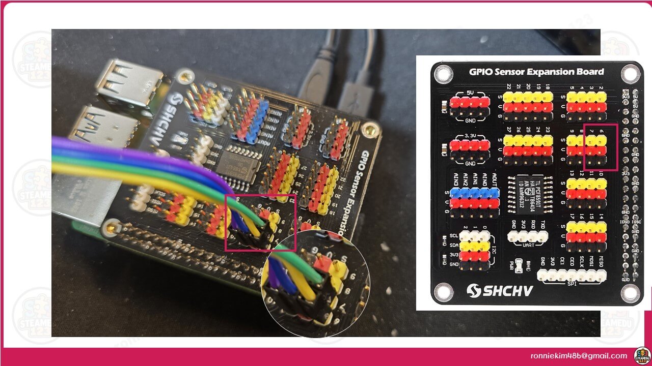 - 라즈베리파이의 GND 핀은 TM1637 모듈의 GND 핀에 연결됩니다.