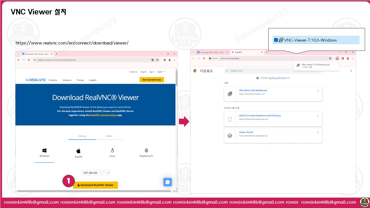 (1) VNC Viewer 다운로드: RealVNC 웹사이트에 접속하여 VNC Viewer를 다운로드합니다.