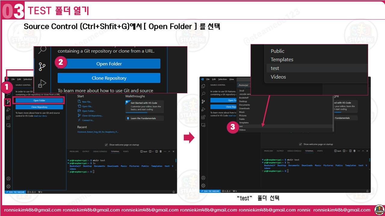 (3) 라즈베리파이 [test] 폴더 만들고 연결하기