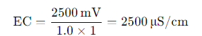![]() 이 값은 센서가 물의 전기전도도를 얼마나 잘 측정했는지 나타냅니다. 이후, 보정 과정에서 물의 온도에 따른 변화까지 반영하여 최종 EC 값을 얻을 수 있습니다. |