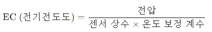![]() 이 값은 센서가 물의 전기전도도를 얼마나 잘 측정했는지 나타냅니다. 이후, 보정 과정에서 물의 온도에 따른 변화까지 반영하여 최종 EC 값을 얻을 수 있습니다. |