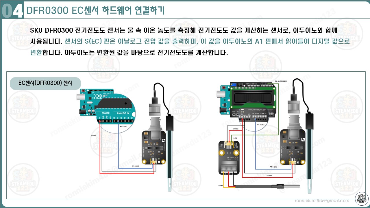 1. 아두이노와 SKU DFR0300 전기전도도 센서 연결