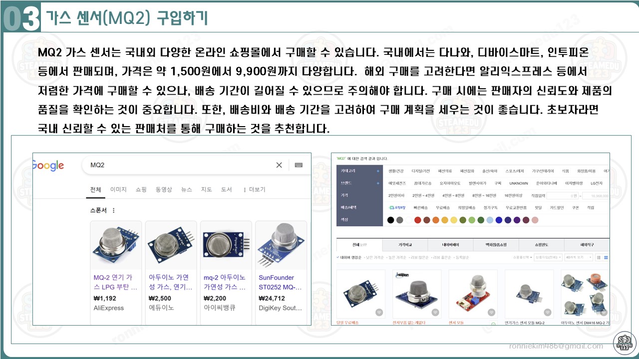 MQ2 가스 센서는 국내 전자부품 쇼핑몰에서 약 9,700원에 판매되고 있으며, 해외 사이트인 알리익스프레스에서는 약 1,000원부터 다양한 가격대로 제공됩니다. 해외 구매 시 배송 기간이 길어질 수 있으므로 긴급한 프로젝트에는 국내 구매를 추천합니다. 초보자는 신뢰할 수 있는 판매처를 선택하고, 제품 설명과 후기를 꼼꼼히 확인하여 품질과 호환성을 보장받는 것이 중요합니다. 또한, 판매처에서 제공하는 기술 지원이나 추가 부품의 유무도 고려하면 좋습니다.