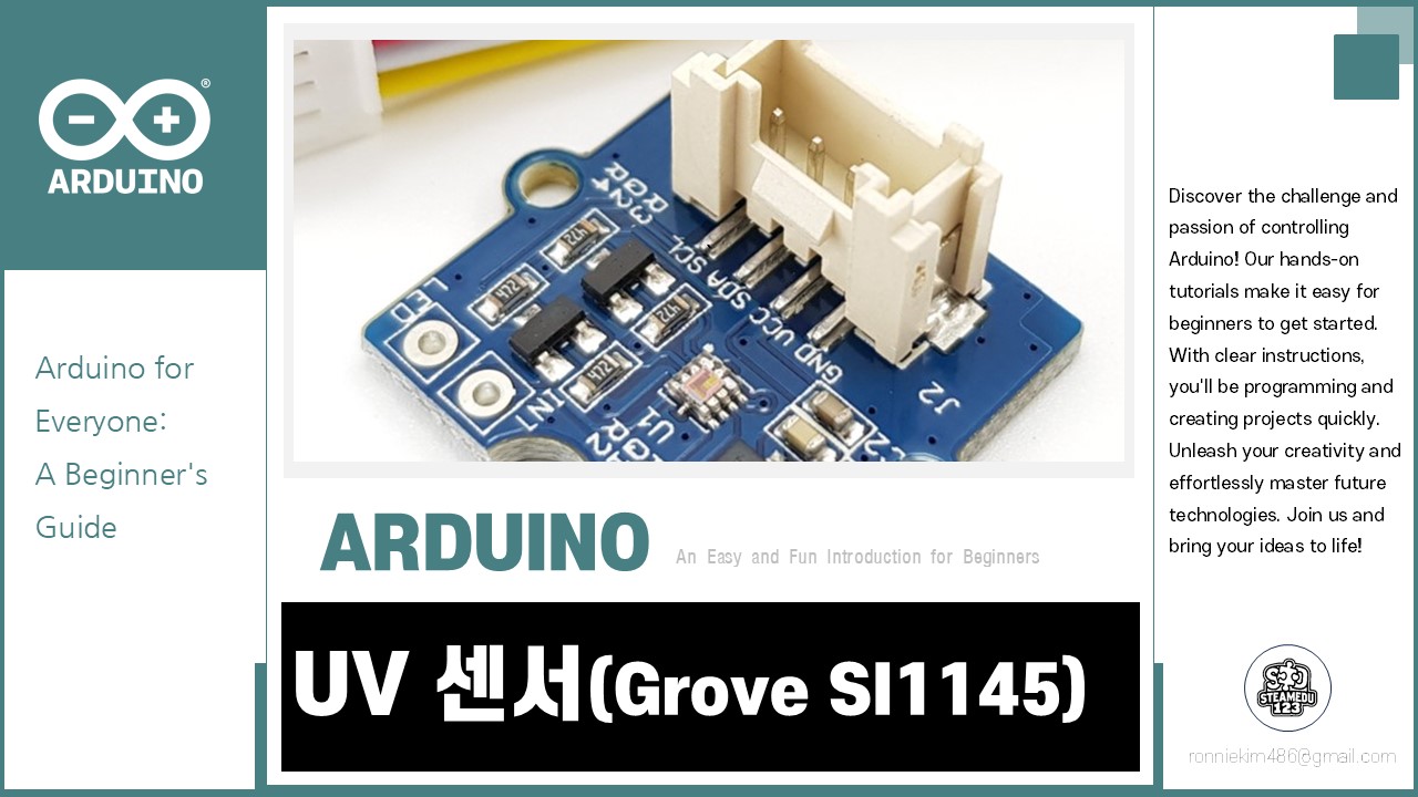 이 프로젝트는 아두이노와 Grove SI1145 UV 센서를 사용하여 실시간으로 자외선(UV), 가시광선, 적외선 데이터를 측정하고, LCD 디스플레이를 통해 이를 확인하는 방법을 다룹니다. 초보자도 쉽게 따라 할 수 있도록 하드웨어 연결, 소프트웨어 코딩, 동작 확인까지 단계별로 설명하였습니다. 이 프로젝트를 통해 환경 데이터를 측정하고 분석하는 과정을 익힐 수 있으며, 이를 기반으로 다양한 응용 프로젝트를 확장할 수 있습니다. 지금 바로 아두이노와 UV 센서를 사용하여 환경 모니터링 세계에 첫걸음을 내딛어 보세요!