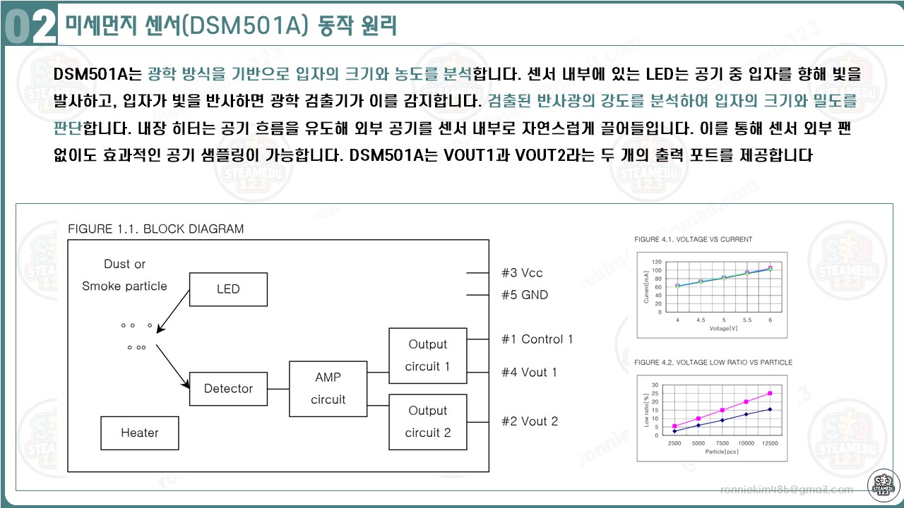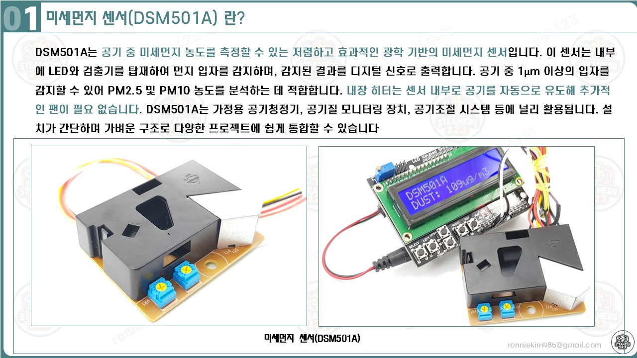 DSM501A는 광학 방식의 먼지 감지 원리를 기반으로 작동합니다.