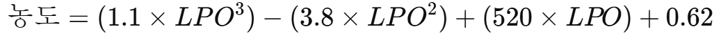 - 계산된 LPO를 이용하여 공식에 따라 미세먼지 농도를 계산합니다.