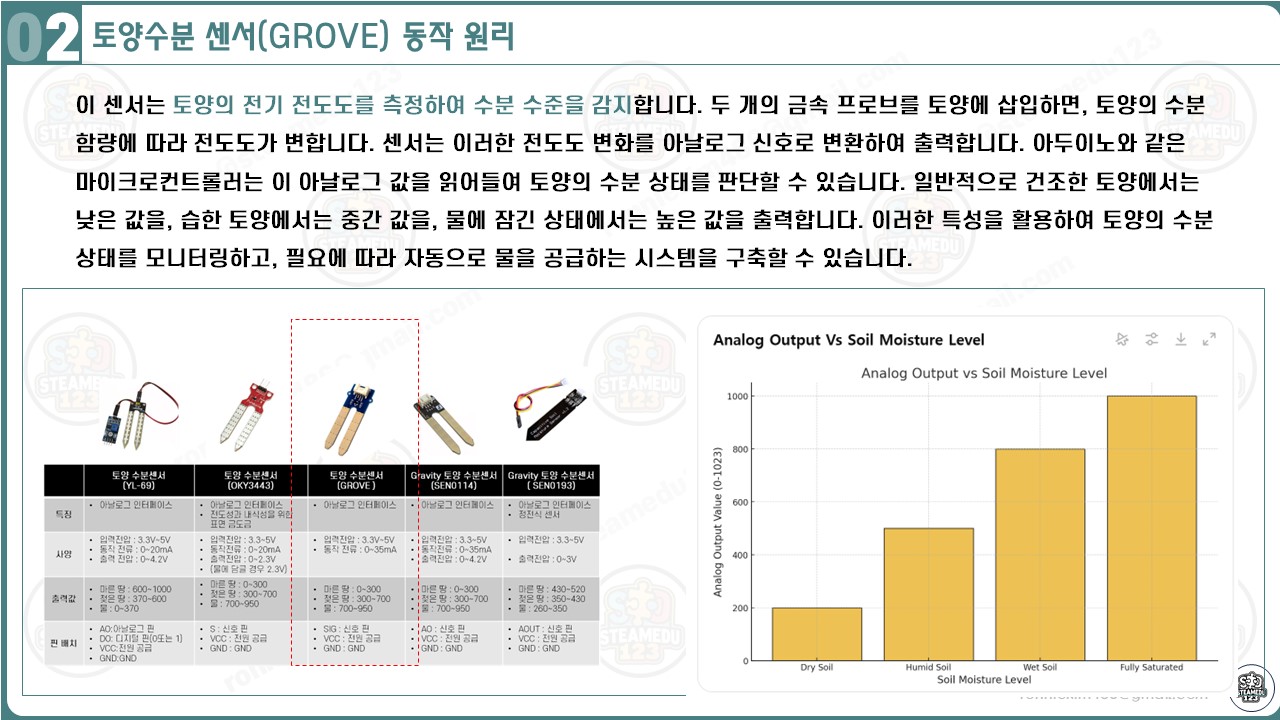 이를 통해 사용자는 센서의 출력 값을 기준으로 정확하게 토양 상태를 판단할 수 있습니다.
