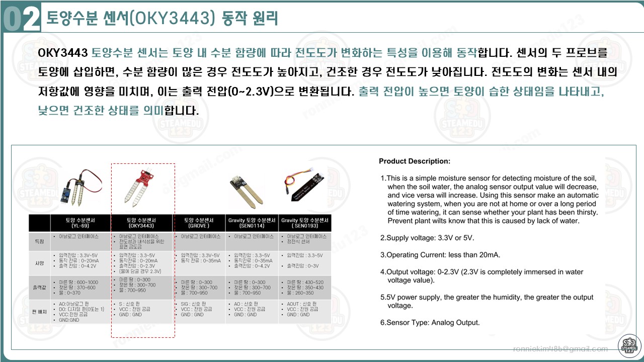 OKY3443 토양수분 센서를 활용한 아두이노 프로젝트! 간단한 연결과 코딩으로 실시간 토양 상태를 모니터링해보세요. 자동 급수 시스템으로도 확장 가능한 아이디어를 직접 구현해보세요.