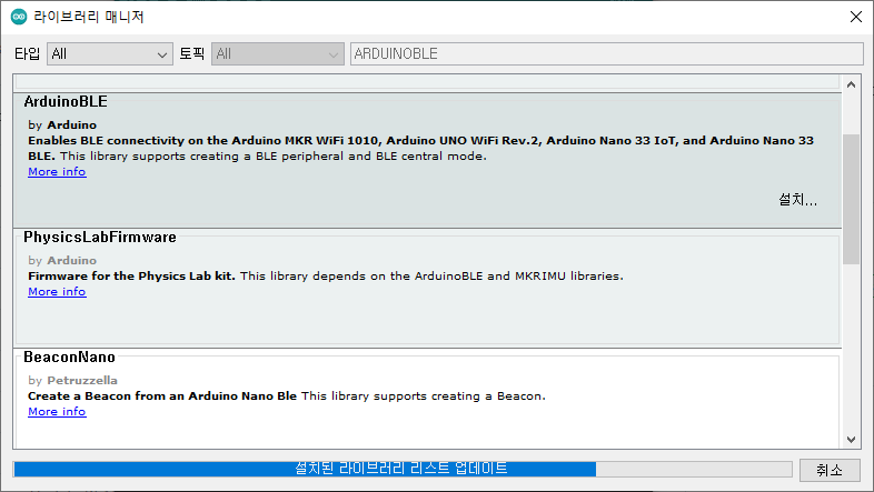 Arduino Nano 33 BLE Sense 라이브러리 설치