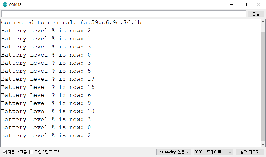 Arduino Nano 33 BLE Sense -Arduino BLE 예 1 – 배터리 잔량 표시기
