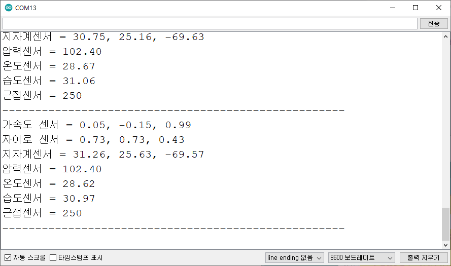 하드웨어 연결, 소프트웨어 코딩이 완료되면 다음과 같이 동작 화면을 확인할 수 있다.