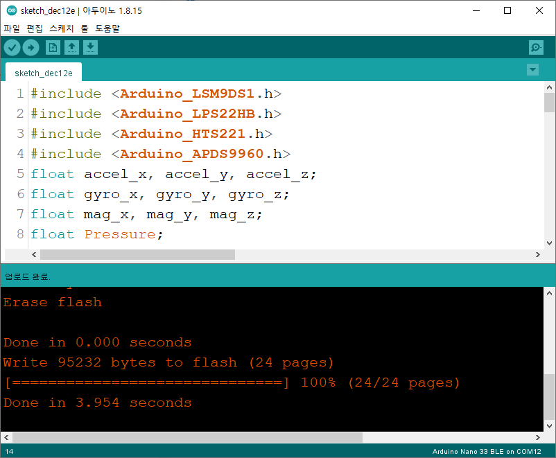 Arduino Nano 33 BLE Sense 의 센서 라이브러리 설치하기