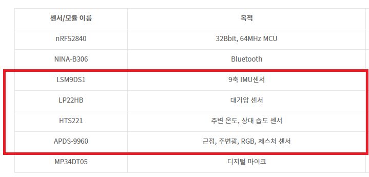 Arduino Nano 33 BLE Sense 센서를 쉽게 실습할 수 있다.