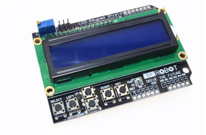아두이노 keypad 쉴드 센서는 다음과 같다. LCD 키패드 쉴드는 아두이노 우노, 메가 보드와 호환(보드 적층) 이 이뤄지도록 디자인되었다. select, up, right, down, and left 키로 구성되었다. lcd 백라이트는 블루색이다.