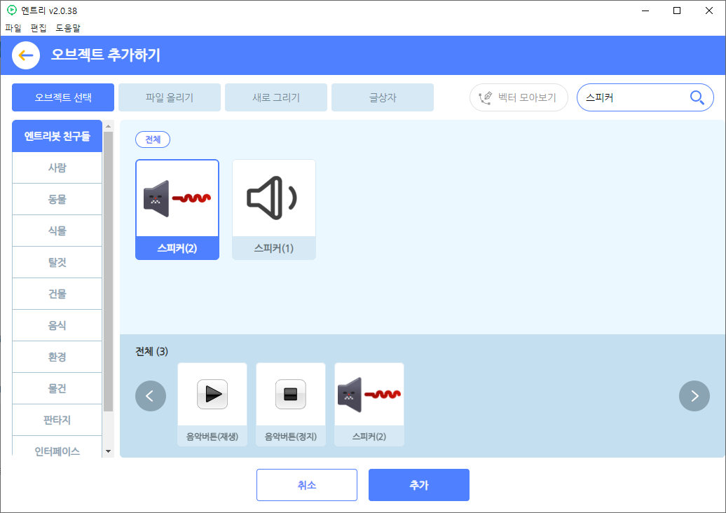 (1) 엔트리에서 오브젝트를 추가한다.