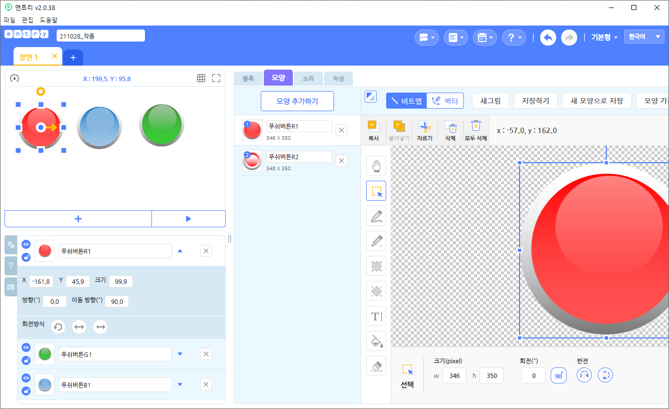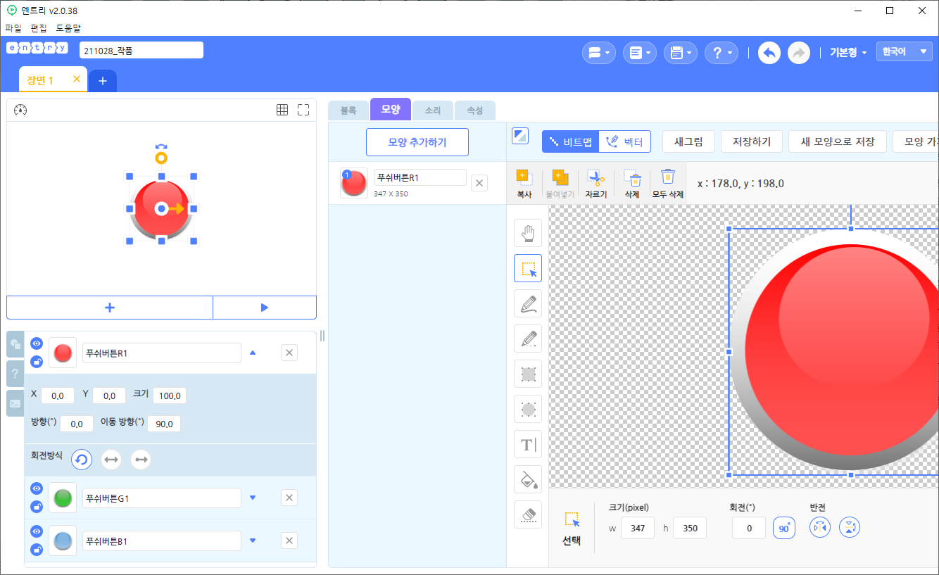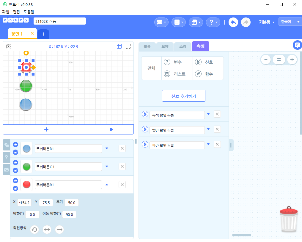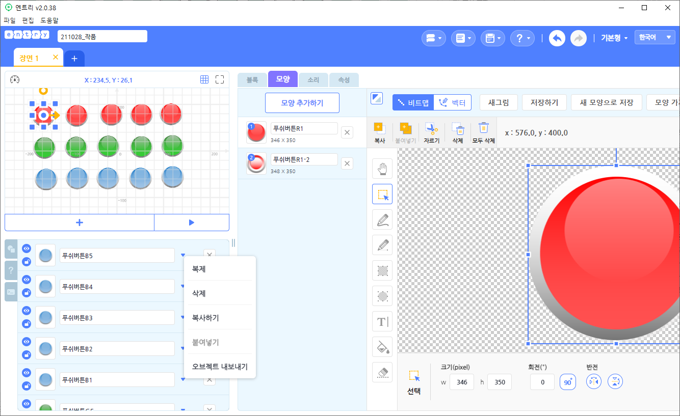 (2) 엔트리의 실행창에서 오브젝트를 선택한다.