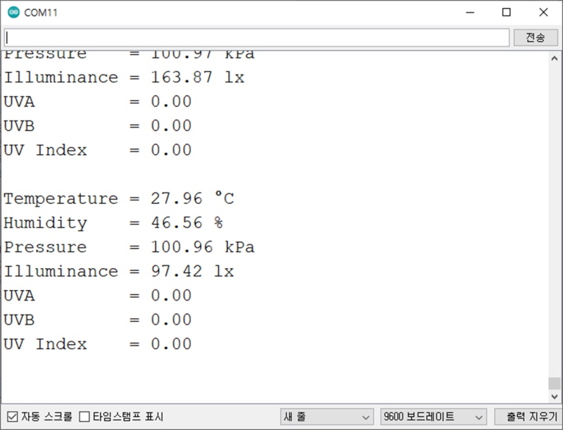 하드웨어 연결, 소프트웨어 코딩이 완료되면 다음과 같이 동작 화면을 확인할 수 있다.