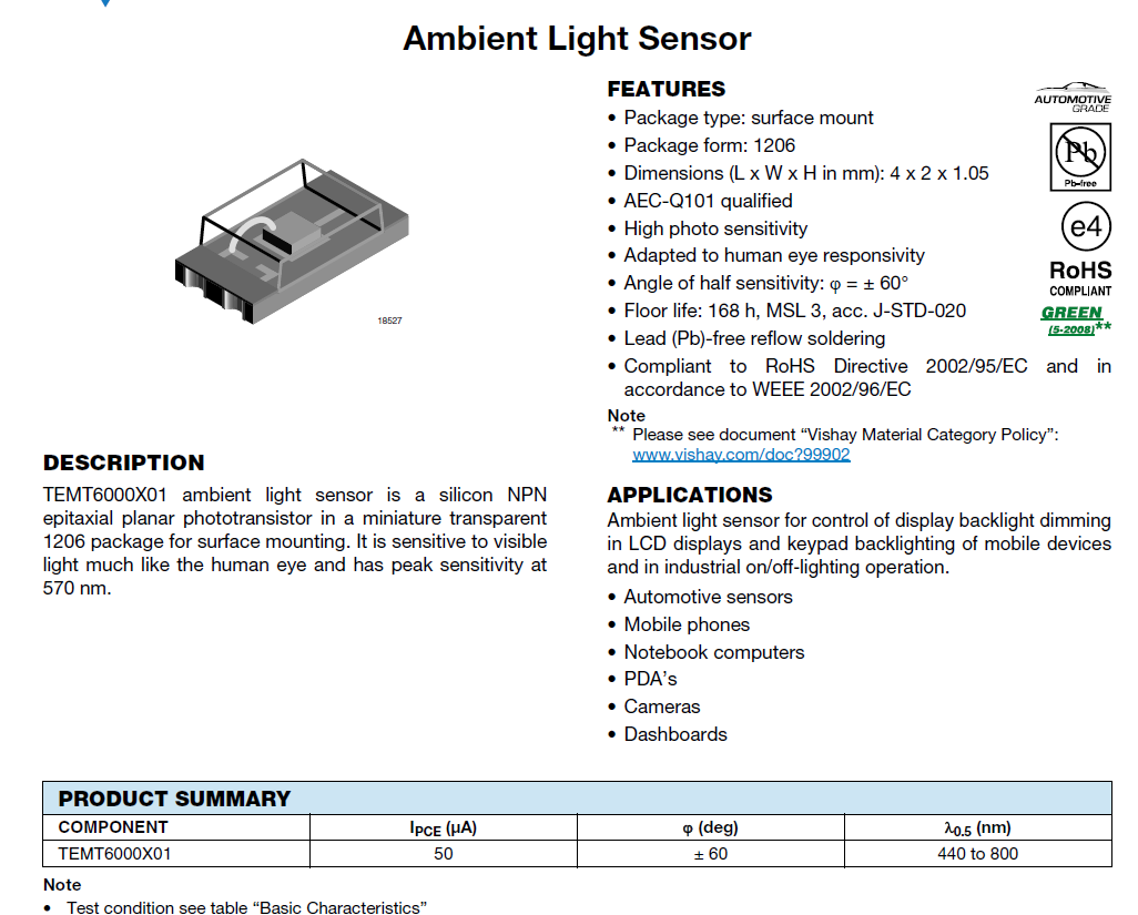 Arduino MKR SHIELD R2 밝기 - VISHAY TEMT6000
