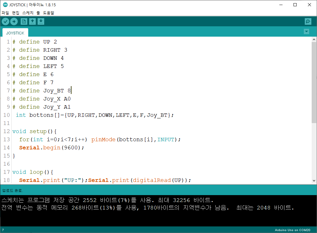조이스틱 쉴드 소프트웨어 코딩