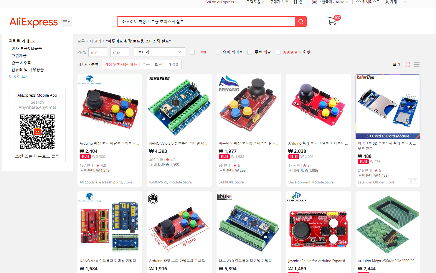 [조이스틱 쉴드]는 알리익스프레스, 네이버 쇼핑몰, 아마존 등에서 센서를 구입할 수 있다