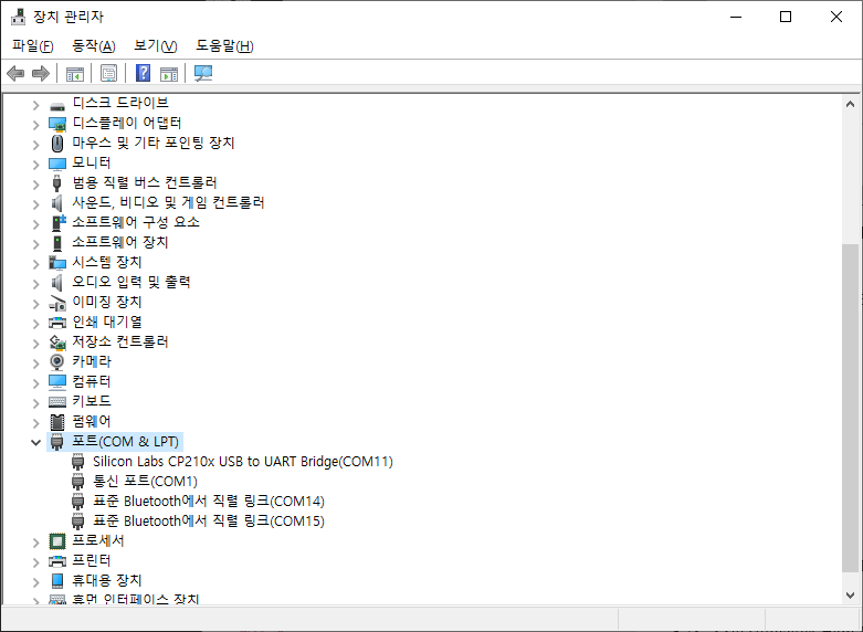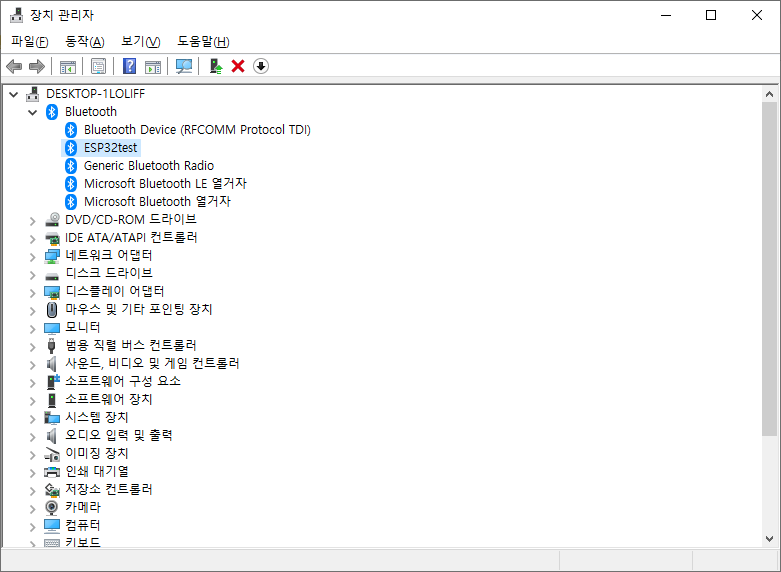 장치 관리자에서 ESP32Test가 연결된것을 확인할 수 있다.
