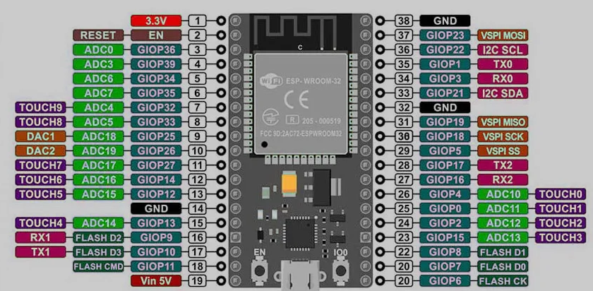 - ESP38PIN: 38개의 GPIO 핀을 제공하여, 더 많은 입출력 핀이 필요한 복잡한 프로젝트에 적합합니다.