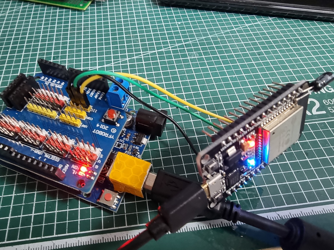 ESP32 <-> 아두이노가 I2C 로 연결된 상태에서 동작을 확인할 수 있다.