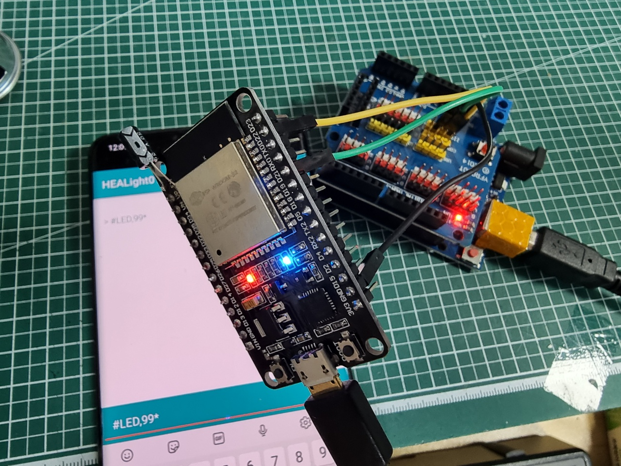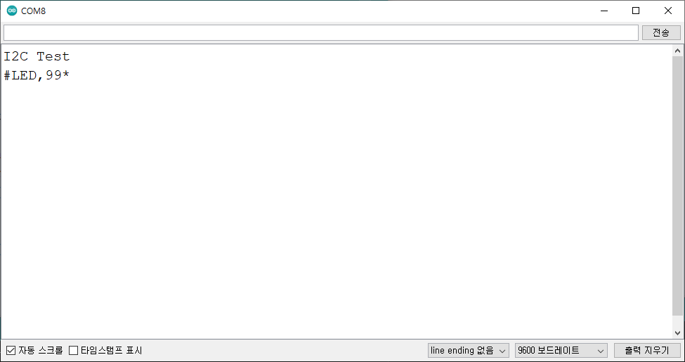 2. 스마트폰에서 명령어 (예: #LED,99*)를 입력하고 전송 버튼을 누른다.