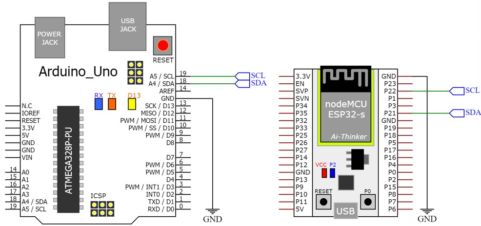 Arduino Uno and nodeMCU ESP-32s 지난 포스트에서 I2C 통신에 대한 설명과 아두이노에서 I2C 통신 구현을 위한 기본적인 함수들을 알아보았습니다. 본 포스트에서는 아두이노 보드끼리 I2C 통신하여 내장 L