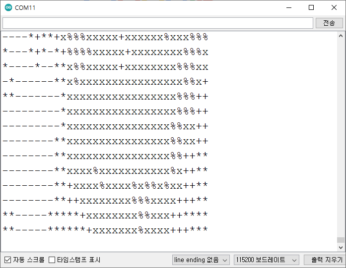 컴파일이 이상없이 완료되면 스케치>업로드(CTRL+U) 를 선택해서 컴파일 파일을 업로드 한다.