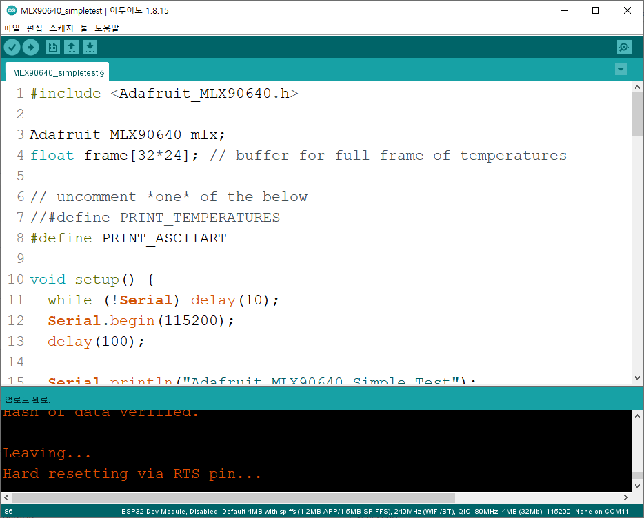 MLX90640 센서 연결하고, 간단한 코딩으로 를 쉽게 실습할 수 있다.