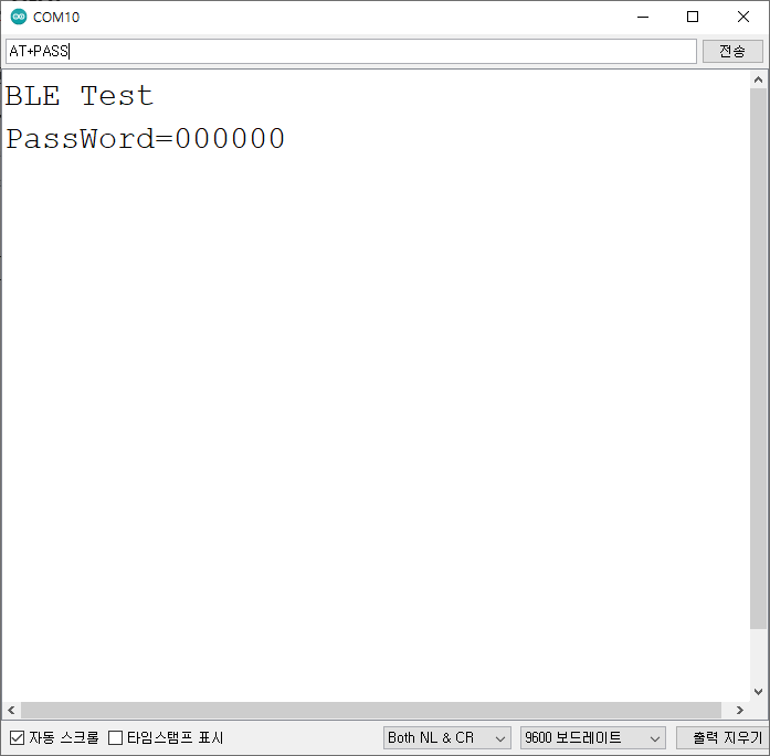 AT+PASS 를 입력하면, 비밀번호를 확인할 수 있다.