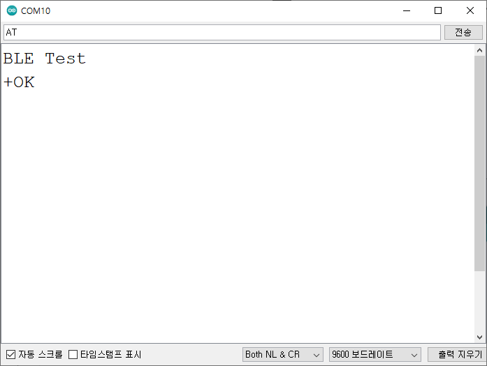 (2) COMMAND 창에 AT를 입력하고 전송 버튼을 누르면, +OK가 출력되면 정상적으로 동작하는 것이다.