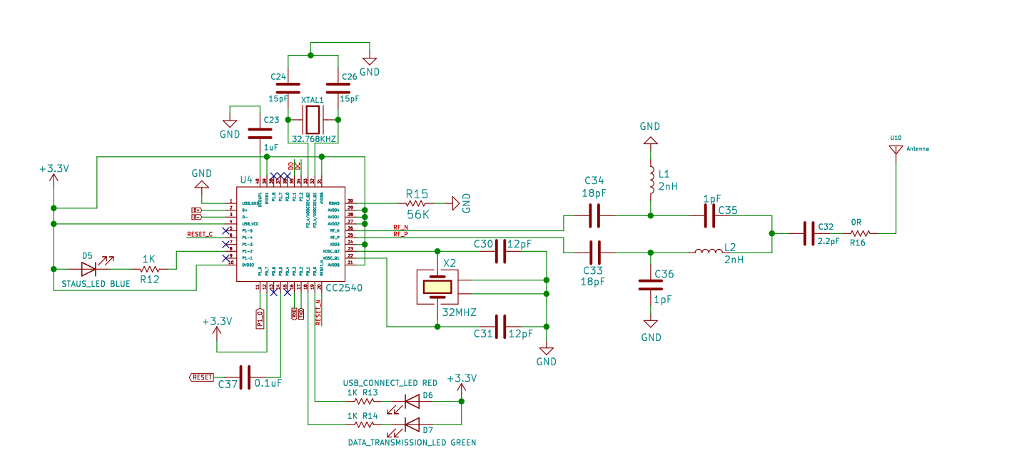 • 블루투스는 TI CC2540 BLE (SOC) 칩을 사용한다.