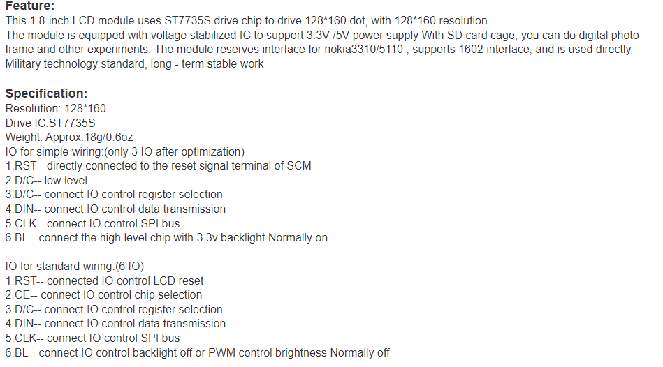 ST7735S TFT LCD 특징